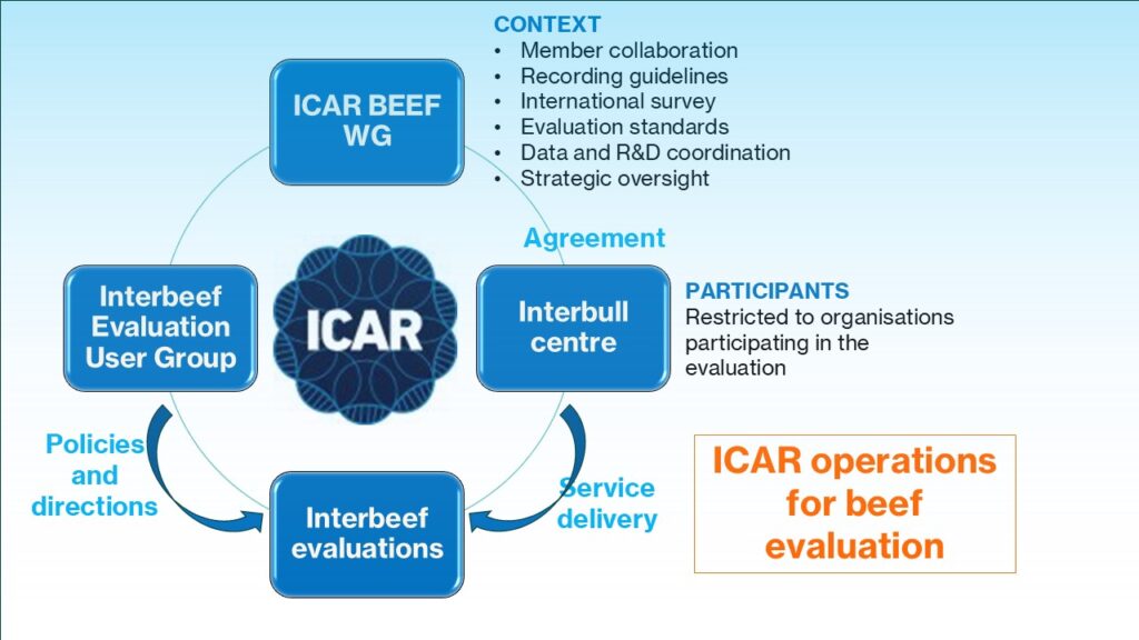 The Beef Working Group provides the overall framework for ICAR’s beef cattle genetic evaluation activities, within which the Interbeef Evaluations User Group manages the development and policy of the Interbeef international genetic evaluations.